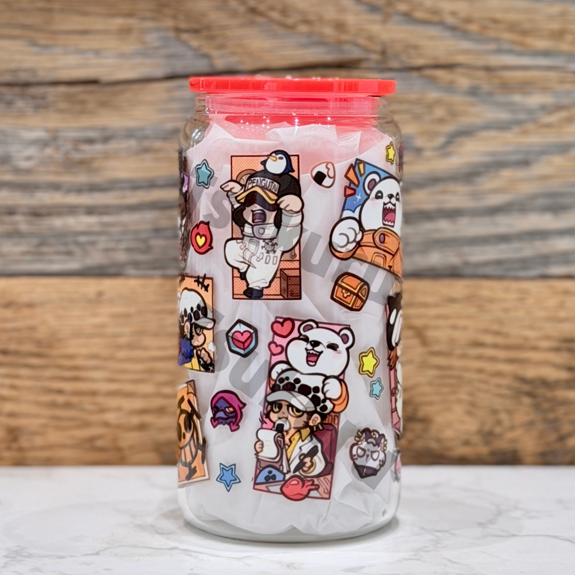 Anime 16oz clear glass tumbler with lid and glass straw.