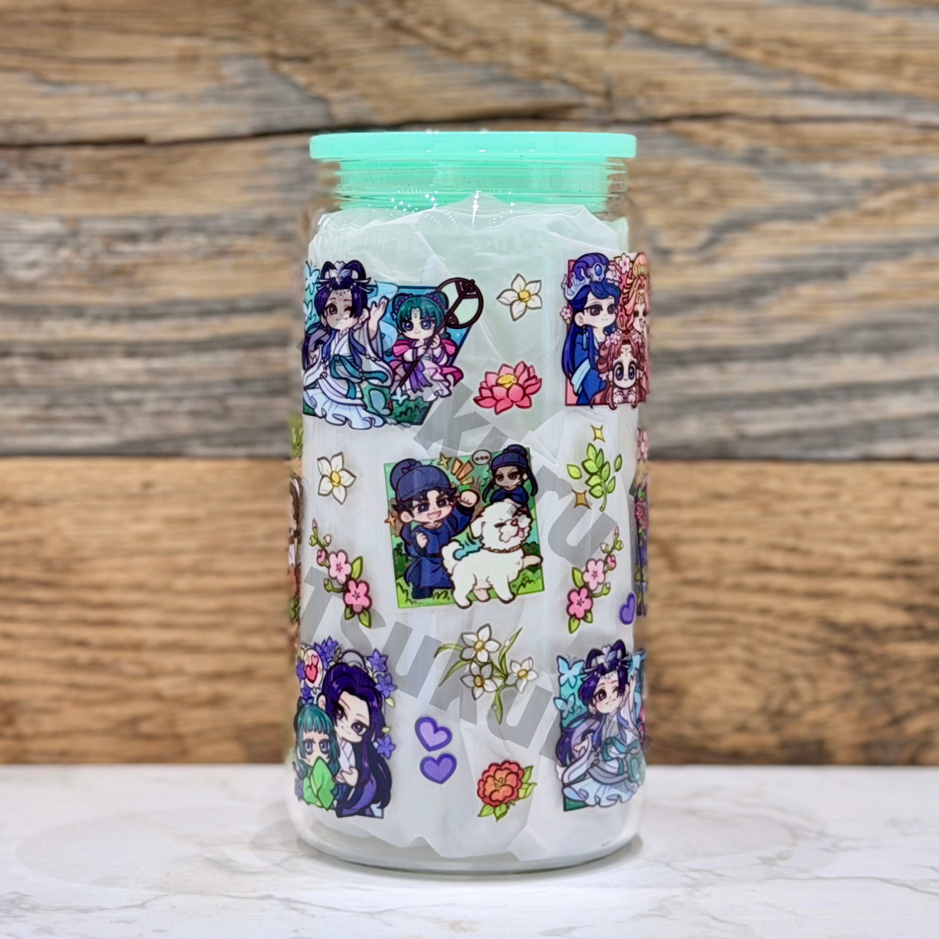 Anime 16oz clear glass tumbler with lid and reusable plastic straw. This is the V2 version that includes the frog scene.